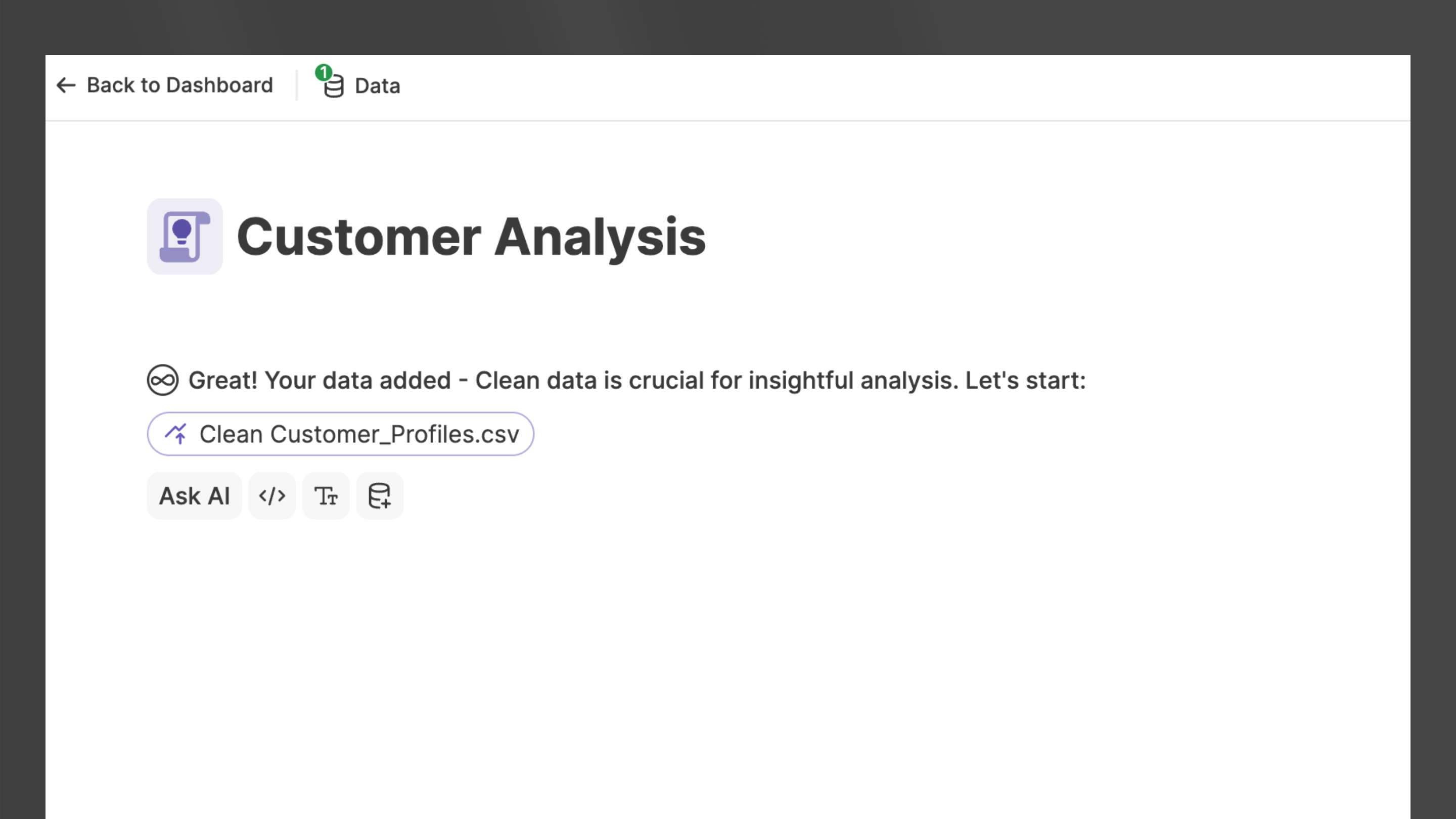 Imagine a space where you can add your data and be instantly equipped with a set of specialized AIs, each an expert in a specific task, all collaborating to streamline your data analysis journey. That's the essence of our AI Notebook. Here, AI isn't just a feature—it's the core of a transformative journey from your raw data to profound insights. \